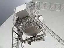 El espejo secundario está constituido por 49 paneles de aluminio, y tiene un diámetro de 7,9 m. Dispone de seis actuadores que lo mantienen en posición correcta al variar la posición de todo el instrumento, o si es necesario, modifican su orientación. La correcta alineación del espejo secundario se verifica a través de un sistema de control láser. El radiotelescopio se orienta hacia el punto deseado a través de doce motores, cuatro de los cuales realizan el movimiento en elevación y ocho el movimiento en acimut.