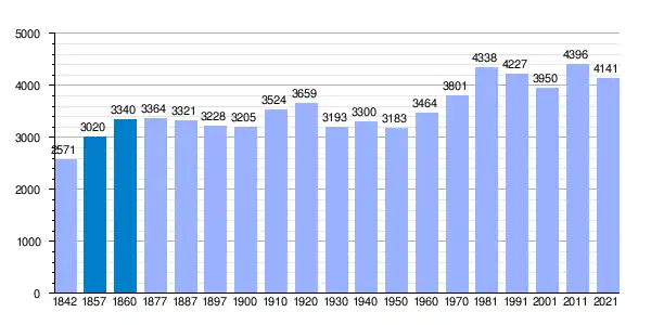 | Gráfica de evolución demográfica de Sariñena[12] entre 1842 y 2021 |