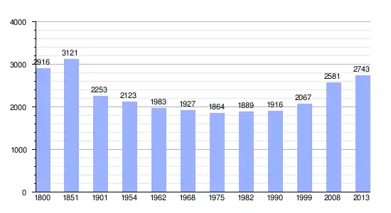 | Gráfica de evolución demográfica de Sartilly-Baie-Bocage entre 1800 y 2013 |