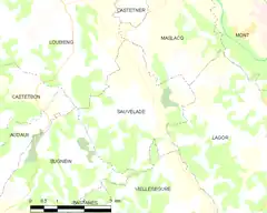 Sauvelade es una población y comuna francesa, en la región de Aquitania, departamento de Pirineos Atlánticos, en el distrito de Pau y cantón de Lagor.