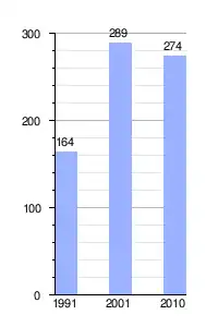 | Gráfica de evolución demográfica de Sauzal Bonito entre 1991 y 2010 |