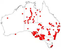 Es un pequeño arbusto nativo del sur de Australia. Las especies se produce en Australia Occidental,[2] Australia del Sur,[3] Victoria[4] y Nueva Gales del Sur.[4]