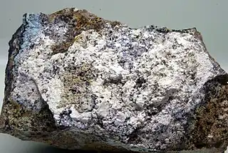 ![]() Scarbroíta (blanco) con alofana (azul). Magaña (Soria) España. | ||