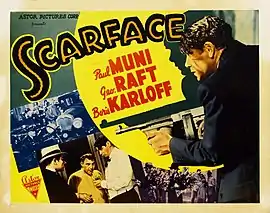 Scarface (traducida al español como Capitán Caracortada y Caracortada, en México; Scarface: Cara cortada en Argentina; o Scarface, el terror del hampa en España) es una película de gánsteres estadounidense dirigida por Howard Hawks en 1932 y producida por el propio Hawks y Howard Hughes.[3] El guion, de Ben Hecht, está basado en la novela homónima de 1929 escrita por Armitage Trail,[lower-alpha 1] que retrata la vida de Al Capone; incluso una escena muestra una versión de la Matanza de San Valentín. Está protagonizada por Paul Muni en el rol de Antonio "Tony" Camonte, y sigue su violento ascenso a través del mundo de las pandillas de Chicago. También coprotagonizan Ann Dvorak, Karen Morley, Osgood Perkins, George Raft y Boris Karloff.