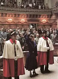 ![]() Un recluta de la Guardia Suiza juramentando en la Ciudad del Vaticano en 2008. |