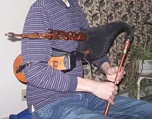 Normalmente la 'Scottish smallpipe' es soplada a fuelle, aunque existen versiones sopladas a pulmón, que no son tan populares dado que la humedad en el aire tiende a deteriorar la delicada lengüeta de caña.
