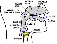 Luego de atravesar la glotis el sonido pasa a través de la cavidad supraglótica, que es la porción del aparato fonador que permite modificar el sonido dentro de márgenes muy amplios. Está conformado principalmente por tres cavidades, la cavidad oral, la cavidad labial y la cavidad nasal, correspondientes a la garganta, los labios y la nariz respectivamente. Estas cavidades constituyen resonadores acústicos, los cuales modifican los sonidos de acuerdo a la forma que adopten, la lengua y los labios permiten efectuar esta variación de manera voluntaria.
