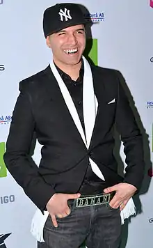 ![]() Sean Banan durante Grammis gala en Cirkus, Estocolmo, 2013 | ||