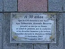 - «Revelan placa en memoria de Sebastián Acevedo « Diario y Radio Universidad Chile». radio.uchile.cl. Consultado el 12 de julio de 2023.