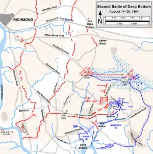 - The Second Battle of Deep Bottom: August 14-20, 1864 (en inglés). The Siege of Petersburg Online. Consultado el 9 de diciembre del 2020.