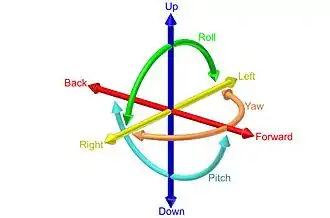 Seis grados de libertad se refiere al movimiento en un espacio tridimensional, es decir, la capacidad de moverse hacia delante/atrás, arriba/abajo, izquierda/derecha (traslación en tres ejes perpendiculares), combinados con la rotación sobre tres ejes perpendiculares (Guiñada, Cabeceo, Alabeo). El movimiento a lo largo de cada uno de los ejes es independiente de los otros, y cada uno es independiente de la rotación sobre cualquiera de los ejes, el movimiento de hecho tiene seis grados de libertad.