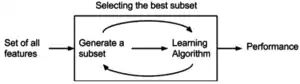 Un algoritmo de selección de características puede ser visto como la combinación de una técnica de búsqueda para proponer nuevos subconjuntos de características, junto con una evaluación mide cuál puntúa los diferentes subconjuntos de características. El algoritmo más sencillo prueba cada subconjunto posible de las características encontrando la que minimiza el índice de error, lo que es una búsqueda exhaustiva del espacio, y es computacionalmente intratable excepto para los conjuntos de característica más pequeños. La elección de la evaluación métrica influye fuertemente en el algoritmo, y son estas evaluaciones métricas las que distinguen entre las tres categorías principales de algoritmos de selección de características: envolturas (wrappers), filtros y métodos embebidos.[3]
