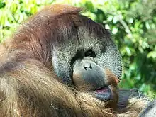 Se suelen diferenciar dos tipos de hándicaps, uno de ellos llamado hándicap revelador muestra que el macho es fuerte, ya que vive a pesar de la tara en contraposición a los machos que no tienen el rasgo. El otro tipo, el hándicap condicional, muestra que el macho se encuentra fuerte, ya que ha sido capaz de desarrollar la característica en contraposición a aquellos machos enfermos o mal alimentados, que no han podido desarrollar el rasgo.[48] Un ejemplo puntual de este extremo es que la presencia de parásitos en aves tiene como principal síntoma externo una menor pigmentación en las plumas.[49] El autor propone explicaciones basadas en la teoría del hándicap para un gran número de situaciones de dimorfismo sexual. Uno de los casos estudiados es el de especies en las que los rasgos expresados suponen una reducción en la visión. Ocurre en determinadas especies de primates, como el orangután (Pongo pygmaeus) donde los amplios repliegues cutáneos presentes alrededor de los ojos dificultan notablemente la capacidad de estos para relacionarse con su medio ambiente. Según las hipótesis de Zahavi la supervivencia de un macho con la visión reducida pondría de manifiesto, ante las hembras, una superioridad genética de este macho frente a otros que no tuvieran esa tara.[50]