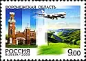 ![]() | 17.01 | Cada sello muestra tres imágenes de una región rusa. 1) El óblast de Vorónezh: el Castillo Ramonsky, un avión IL-96 y la reserva natural museo histórico-arqueológico de Divnogorie | 40,0 × 28,0 | 9,00 |