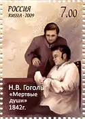 ![]() | 01.04 | 1) Retrato del escritor Nikolái Gógol La hoja bloque muestra una naturaleza muerta con libros y una vela | 37,0 × 49,0 (110,0 × 70,0) | 15,00 |