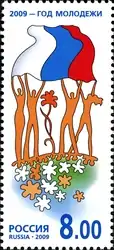 ![]() | 27.06 | 1) Dibujo alusivo que muestra unos jóvenes sosteniendo una gran bandera de Rusia sobre un prado de flores | 26,0 × 58,0 | 8,00 |