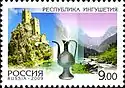 ![]() | 07.07 | Cada sello muestra tres imágenes de una región rusa. 1) La república de Ingushetia: el complejo arquitectónico de Vovnushki, una jarra de cobre del siglo XIX y las montañas Stolovaya y Kazbek | 40,0 × 28,0 | 9,00 |