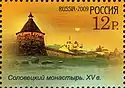 ![]() | 27.07 | Cuatro templos del Conjunto histórico y cultural de las Islas Solovetsky, declarado Patrimonio de la Humanidad por la UNESCO en 1992 La hoja bloque muestra otras vistas de las islas 1) La ermita de la Santísima Trinidad (siglo XVII) | 40,0 × 28,0 (110,0 × 150,0) | 12,00 |