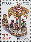 ![]() | 16.01 | 1) Serie anual a cargo de PostEurop, ese año bajo el tema Juguetes; el sello muestra un carrusel de juguete típico de Dymkovo y dos muñecas matrioska | 37,0 × 50,0 | 23,00 |