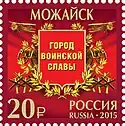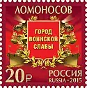 ![]() | 24.02 | Seis ciudades rusas que portan la distinción honorífica "Ciudad de Gloria Militar", en el sello se ve el nombre de la respectiva ciudad acompañado del emblema de la insignia 1) Lomonósov | 37,0 × 37,0 | 20,00 |