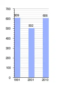 | Variación intercensal | +20 % (2001 - 2010) | |