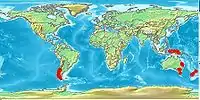 La laurisilva aparece en las montañas de la franja costera de Nueva Gales del Sur en Australia, Nueva Guinea, Nueva Caledonia, Tasmania y Nueva Zelanda. Los bosques de laurel de Australia, Tasmania y Nueva Zelanda son el hogar de especies relacionadas con las de Sudáfrica, Macaronesia, Madagascar, Japón del Sur, la isla de Jeju en Corea, Taiwán, la costa del sur de China, costas de América del Norte a Panamá y los bosques de laurel de Valdivia , Incluida el haya meridional (Nothofagus) a través de la conexión con la flora antártica. Otras flora típicas incluyen Winteraceae, Myrtaceae, sasafras del sur (Atherospermataceae), coníferas de Araucariaceae, Podocarpaceae, y Cupressaceae, y helechos arborescentes.[4]