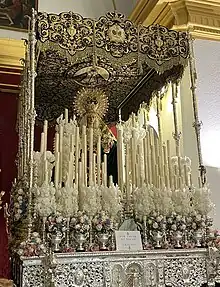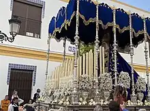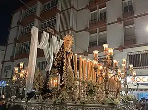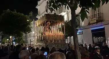 - Paso: Paso de madera de cedro barnizado en caoba, con aplicaciones y candelabros plateados. La hermandad está en proceso de realizar un nuevo paso.