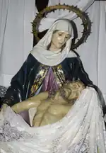 - La Virgen María con Cristo muerto en sus brazos al pie de la Cruz.