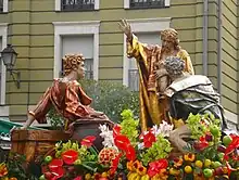 - Las escenas: Suelen ser grupos escultóricos y son llevados en carroza rodada. Representan momentos concretos de la Pasión como la Oración del Huerto o la Verónica.