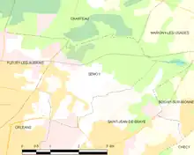 Carte de la commune de Semoy (Loiret) et des communes limitrophes