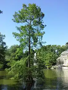 La primera parte del trayecto conserva características de los jardines de estilo inglés, con pasarelas sobre el agua y un paisaje imitativo de la naturaleza, sin caminos de trazado recto, hasta llevar al estanque del Palacio de Cristal. Justo al frente se levanta un cedro del Himalaya, mientras que del agua sobresalen varios ejemplares de cipreses de los pantanos, uno de los cuales también tiene la categoría de Árbol Singular. El entorno acuático se completa con la presencia de peces, patos y tortugas.
