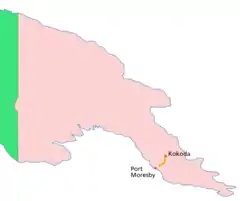 El sendero comienza en Owers Corners, a 50 kilómetros al este de Port Moresby, y termina en Kokoda, en la provincia de Oro.