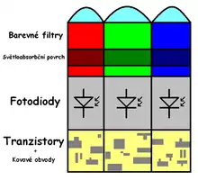 Un sensor de iluminación trasera contiene los mismos elementos, pero sitúa la matriz del cableado detrás de la capa fotocátodos, invirtiendo la posición de la oblea de silicio durante la fabricación, adelgazando después su reverso para que la luz pueda llegar con más facilidad a la capa de fotocátodos sin pasar a través de la capa de cableado. Este cambio permite mejorar (desde un 60% a más del 90%) la probabilidad de que un fotón entrante sea capturado por la capa sensible,[3] la mayor diferencia de ganancia se obtiene cuanto más pequeño es el tamaño de píxel, ya que el área de captura de luz ganada al cambiar el cableado de la parte anterior (luz incidente) a la superficie trasera (parafraseando el diseño BSI) es proporcionalmente más pequeña para un píxel más grande.[3] Los sensores BSI-CMOS son más ventajosos en condiciones de poca luz.[4]