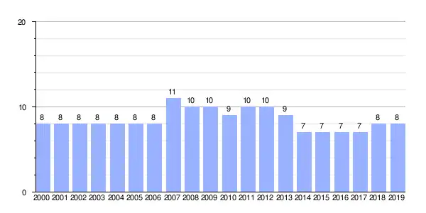 | Gráfica de evolución demográfica de Seoane entre 2000 y 2019 |