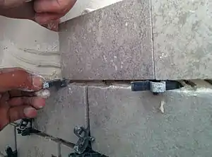 En albañilería, se pueden usar piedras pequeñas para alinear o rellenar huecos entre ladrillos o losas más grandes.