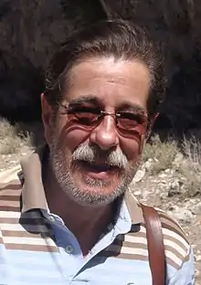 ![]() Sergio Ripoll López en la cueva Ambrosio superior durante una visita en 2014. | ||