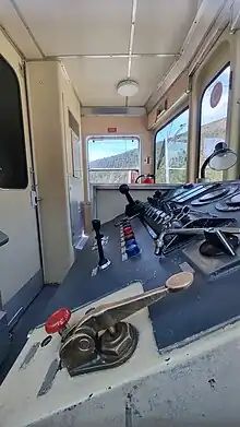 Las cabinas de conducción se encuentran, como se ha indicado anteriormente, en los extremos libres de la composición. El pupitre de conducción se sitúa a la derecha en el sentido de la marcha, y dispone de todos los mandos y dispositivos necesarios para efectuar la conducción del tren. El regulador de tracción tiene grabados, en su punto de anclaje, los valores de velocidad correspondientes a cada punto de tracción, lo que permite circular mediante el sistema de velocidad prefijada, algo que en su día convirtió a las UT 442 en los vehículos de vía métrica más avanzados tecnológicamente de España. En el lado contrario al pupitre de mando se encuentra una mesa auxiliar, que es la empleada por el ayudante, el cual cuenta con un asiento tipo transportín. Entre esta mesa auxiliar y el pupitre de conducción se encuentra una puerta de intercomunicación, que permite el paso entre coches del personal de conducción, además de ser el único acceso a la cabina desde el exterior, ya que estas unidades no disponen de puertas laterales en sus cabinas. Dado que Renfe ha decidido recientemente que la composición mínima en servicio sea la de Motor+Remolque Cabina, perdiendo la flexibilidad de explotación que supone disponer de coches motores con dos cabinas (posibilidad de establecer servicios con un solo coche en momentos de baja demanda), se ha suprimido la pequeña cuña quitanieves que tenían los bogies cercanos al acoplamiento con el remolque. Por el momento las segundas cabinas de los coches motores no han sido suprimidas, seguramente ante la necesidad de emplearlas en las maniobras que con frecuencia se hacen en Cercedilla para mover coches motores y remolques entre unidades.