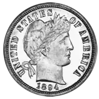 La mayor parte de fechas de la serie Barber son fáciles de identificar, pero la moneda de diez centavos de 1894 de la ceca de San Francisco (1894-S), con una acuñación de 24 unidades, es una verdadera rareza.[1]