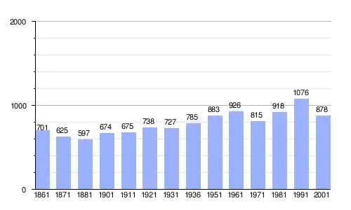 | Gráfica de evolución demográfica de Serra d'Aiello entre 1861 y 2001 |