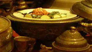 - Gayley, Holly (2013). «Reimagining Buddhist Ethics on the Tibetan Plateau». Journal of Buddhist Ethics 20: 264. ISSN 1076-9005. Archivado desde el original el 25 de abril de 2018. Consultado el 21 de junio de 2020. «Each dish is described in excruciating detail, including the infamous case of eating live monkey brains right out of the skull.»