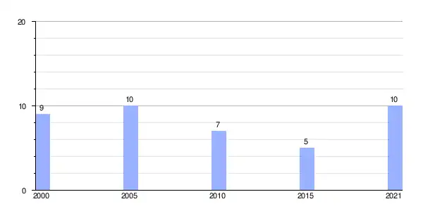 | Gráfica de evolución demográfica de Seteventos (aldea) entre 2000 y 2021 |