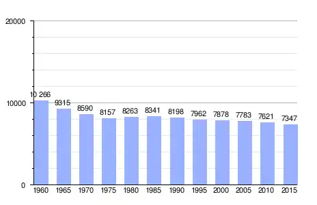 | Gráfica de evolución demográfica de Shōwa entre 1960 y 2015 |
