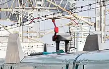 Los coches 3 y 7 tienen cada uno un pantógrafo de un solo brazo, aunque normalmente solo uno se levanta en servicio.[25]