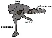 ![]() Ilustración de los huesos pélvicos y las vértebras de la cola | ||