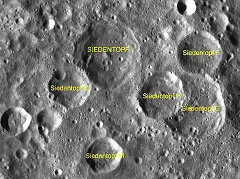 Por convención estos elementos son identificados en los mapas lunares poniendo la letra en el lado del punto medio del cráter que está más cerca de Siedentopf.