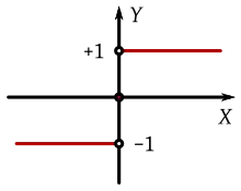 La función signo, sgn(x) es una función que sólo depende del signo del número sobre el que actúa. Esto significa que sgn(x) tiene un cierto valor para todos los números positivos, otro cierto valor para todos los números negativos, y otro para cero.[2] Más concretamente, la función signo es: