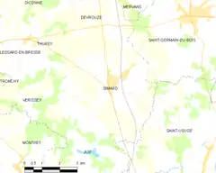 Simard es una población y comuna francesa, en la región de Borgoña, departamento de Saona y Loira, en el distrito de Louhans y cantón de Montret.