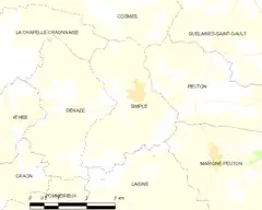 Simplé es una población y comuna francesa, en la región de Países del Loira, departamento de Mayenne, en el distrito de Château-Gontier y cantón de Cossé-le-Vivien.
