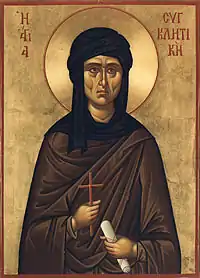 - «Saint Syncletica». CatholicSaints.Info (en inglés). Consultado el 17 de abril de 2024.