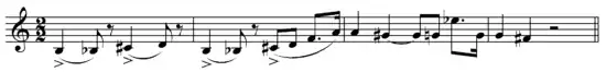 Debido a su ambigüedad tonal, esta línea cromática transmite urgencia y tensión. El tema suena dos veces antes de pasar a la orquesta, y representa el descenso de Dante a los infiernos. Volverá periódicamente a través del movimiento (en varias formas) y proporciona una fuerza conductora tras la música, empujando a la sinfonía hacia su clima literario, el suelo helado del infierno.